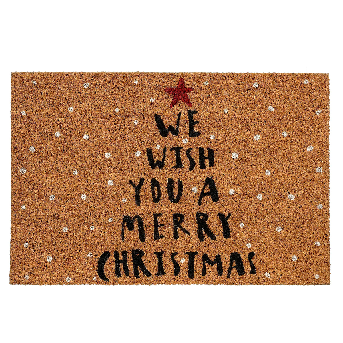 Χριστουγεννιάτικο πατάκι εισόδου από την εταιρεία Edelman. Είναι κατασκευασμένο από κοκοφοίνικα σε μπεζ χρώμα με μαύρες-λευκές-κόκκινες λεπτομέρειες και χριστουγεννιάτικο σχέδιο. Ιδανικό για χρήση στην είσοδο του σπιτιού ή σε κάποια μπαλκονόπορτα.