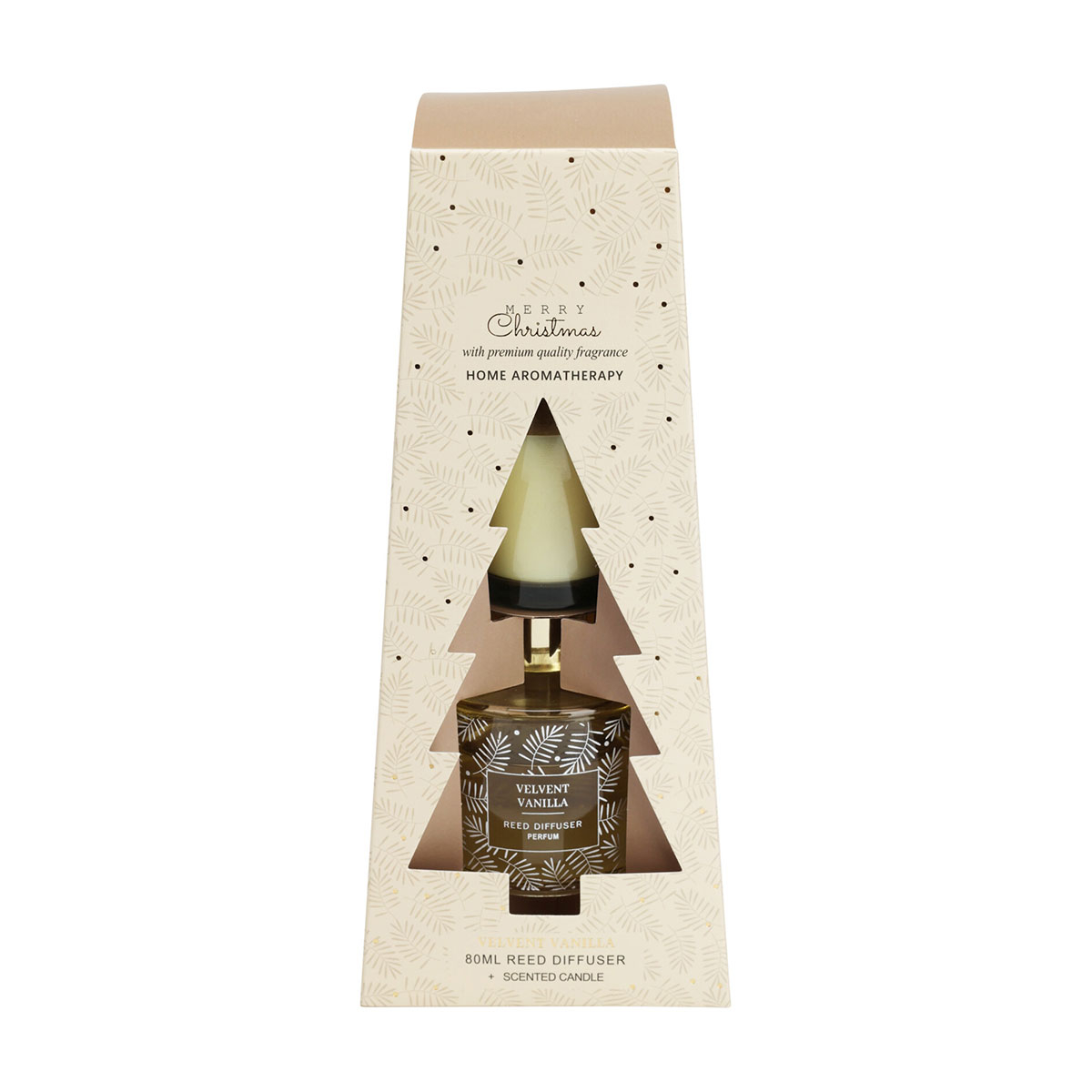 Χριστουγεννιάτικο σετ αρωματικών αποτελούμενο από αρωματικό χώρου με στικς που διαχέουν μοναδικά το άρωμα στο χώρο σας και 1 αρωματικό κερί. Το άρωμά τους από βανίλια δημιουργεί μια ζεστή ατμόσφαιρα. Ιδανικό για το σαλόνι, την είσοδο ή το υπνοδωμάτιο καθώς αποτελεί ένα αρωματικό και διακοσμητικό στοιχείο που συνδυάζει στυλ και γιορτινή διάθεση.