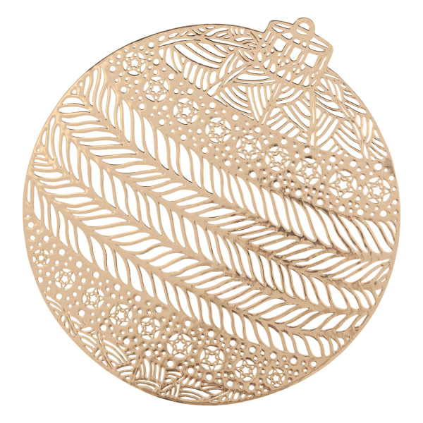 Χριστουγεννιάτικο σουπλά σε χρυσό χρώμα, διάτρητο, με σχέδιο χριστουγεννιάτικης μπάλας. Είναι κατασκευασμένο από 100% PVC. Ιδανικό για να δώσει στην τραπεζαρία σας την απόλυτη χριστουγεννιάτικη ατμόσφαιρα.