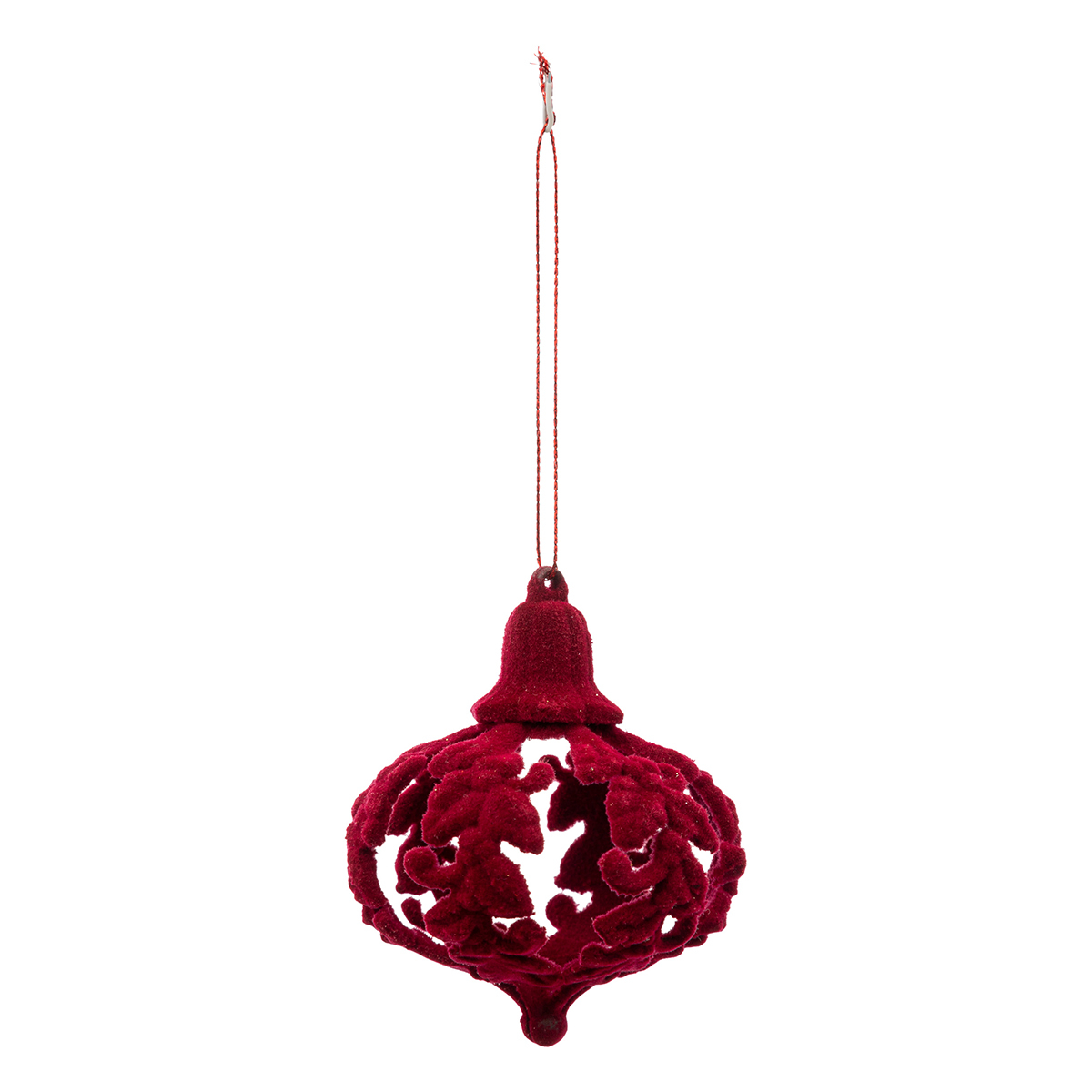 Χριστουγεννιάτικο στολίδι σε μπορντώ χρώμα με διάτρητες λεπτομέρειες. Είναι κατασκευασμένη από πλαστικό με βελουτέ επένδυση. Συνδυάστε πολλά διαφορετικά στολίδια στο δέντρο σας για ένα μοναδικό χριστουγεννιάτικο αποτέλεσμα.