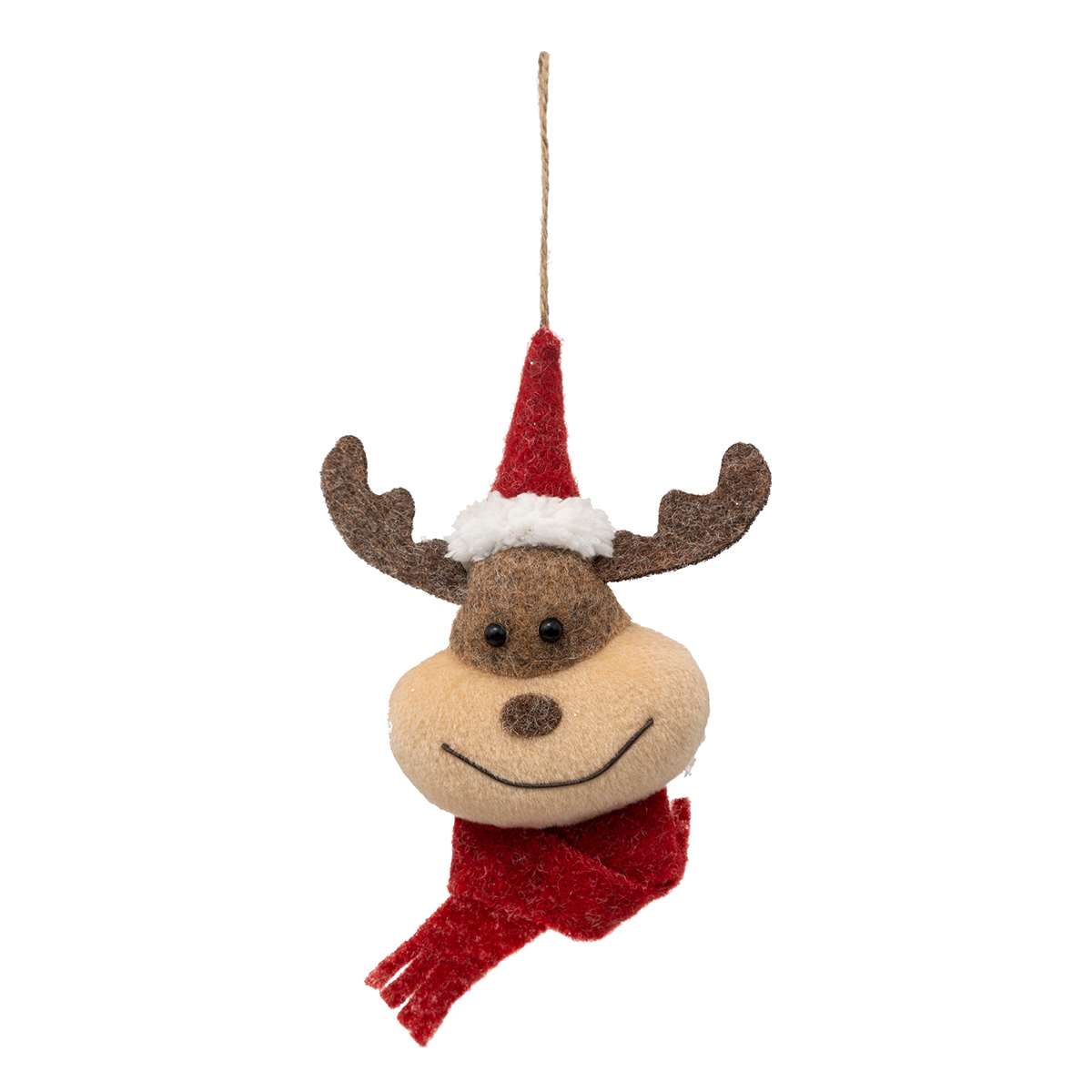 Χριστουγεννιάτικο στολίδι τάρανδος σε καφέ-μπεζ αποχρώσεις με κόκκινες-λευκές λεπτομέρειες. Είναι κατασκευασμένο από πολυεστερικό ύφασμα. Συνδυάστε στολίδια διαφόρων σχεδίων και χρωμάτων στο δέντρο σας για ένα μοναδικό χριστουγεννιάτικο αποτέλεσμα.