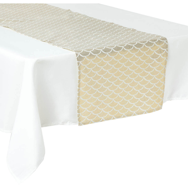 Χριστουγεννιάτικο τραπεζομάντηλο 140x240 σε χρυσή απόχρωση και λευκές λεπτομέρειες. Το ύφασμα είναι από 60% polyester, 30% βαμβάκι και 10% βισκόζη που το καθιστά ιδιαίτερα απαλό. Ιδανικό για να μετατρέψει το σπίτι σας στην απόλυτη χριστουγεννιάτικη ατμόσφαιρα.