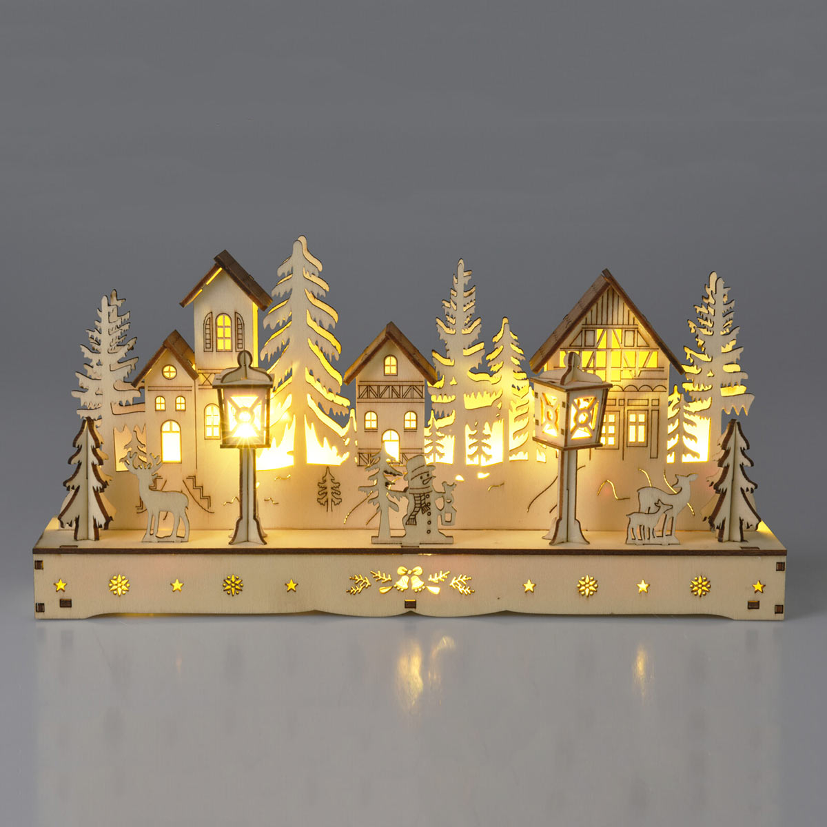 Χριστουγεννιάτικο διακοσμητικό χωριό σε μπεζ αποχρώσεις με εκρού λεπτομέρειες. Είναι κατασκευασμένο από ξύλο με πιστοποίηση FSC, που εγγυάται ότι όλες οι πρώτες ύλες προέρχονται από ελεγχόμενους πόρους και υπεύθυνα διαχειριζόμενα δάση. Αυτή η διαχείριση προάγει τη βιοποικιλότητα και ωφελεί τις τοπικές κοινωνίες. Διαθέτει 10 Led λαμπάκια λευκού θερμού χρώματος με σταθερό φωτισμό. Λειτουργεί με 2 μπαταρίες ΑA LR6 (δεν περιλαμβάνονται). Δημιουργήστε το δικό σας Χριστουγεννιάτικο χωριό συνδυάζοντας διάφορα διακοσμητικά για ένα μοναδικό αποτέλεσμα.
