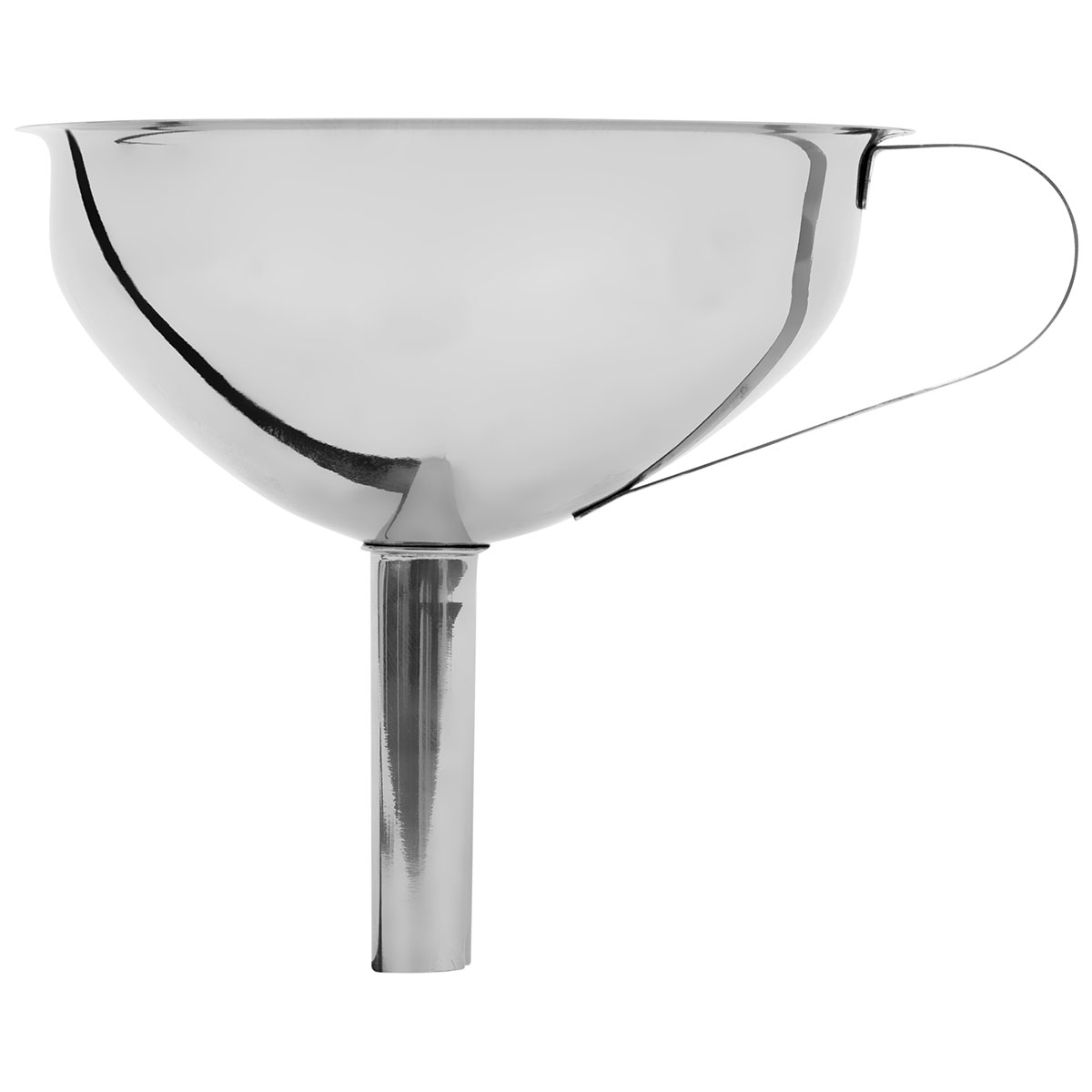 Χωνί σε ασημί χρώμα, με μικρή σίτα στο στόμιο για να κρατάει τυχόν σκουπιδάκια και χερούλι για να το κρατάτε. Είναι κατασκευασμένο από ανοξείδωτο υλικό.