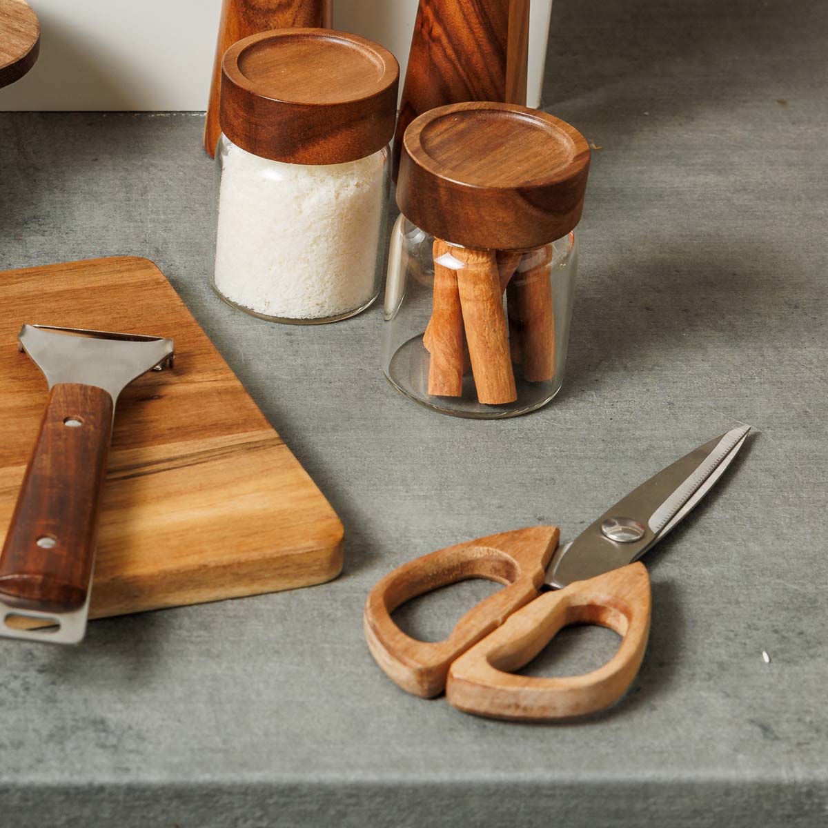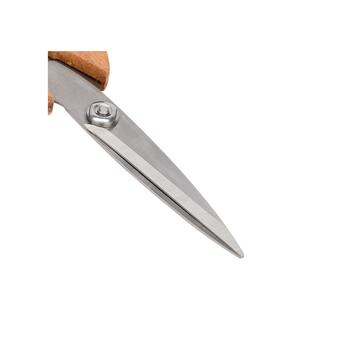 Ψαλίδι γενικής χρήσης από την εταιρεία εstia. Είναι κατασκευασμένο από ανοξείδωτο ατσάλι σε ασημί χρώμα. Διαθέτει ξύλινη λαβή από ξύλο ακακίας σε φυσική απόχρωση. Το ξύλο προσφέρει αντοχή στη φθορά του χρόνου. Ιδανικό εργαλείο για κάθε κουζίνα.