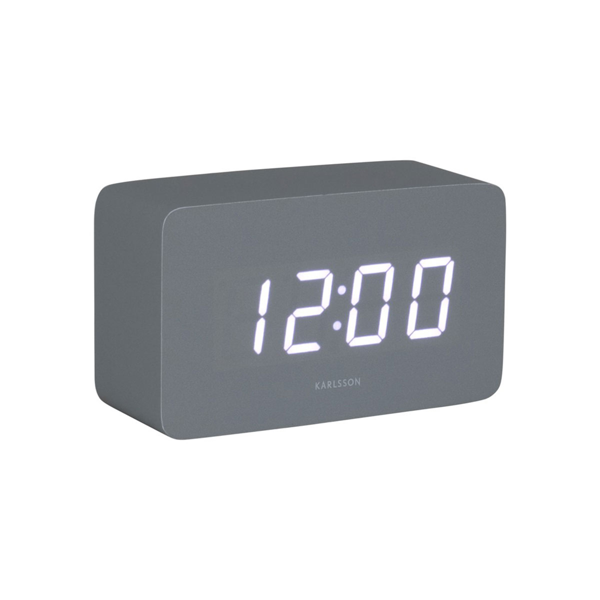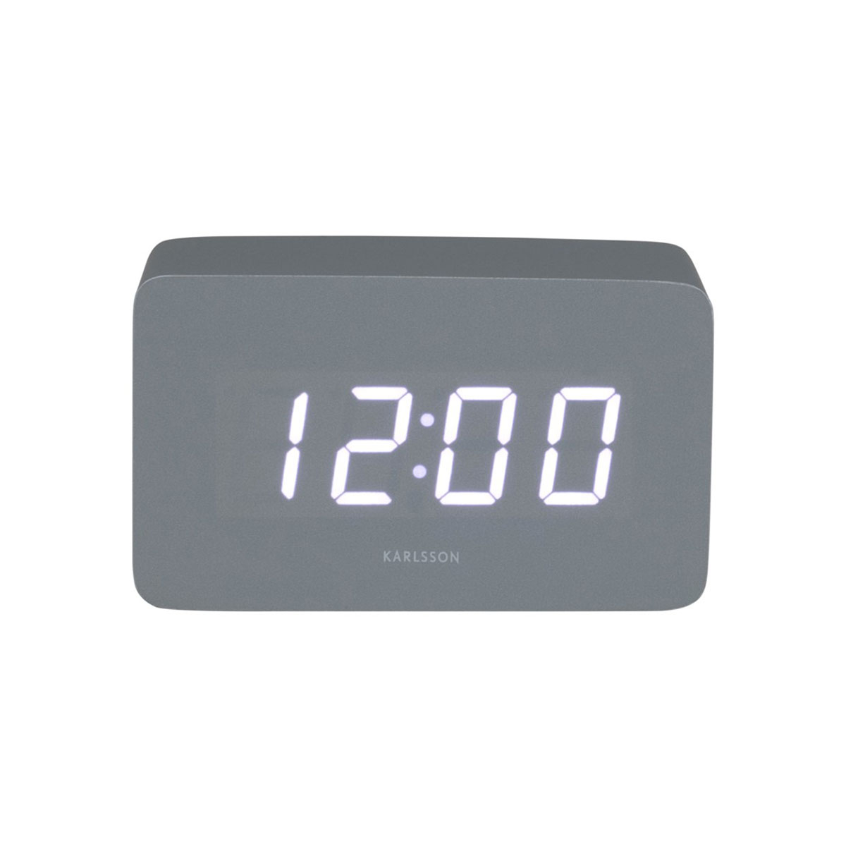 Επιτραπέζιο ρολόι - ξυπνητήρι ψηφιακό σε γκρι χρώμα, με μοντέρνο σχεδιασμό από την εταιρεία Karlsson. Κατασκευασμένο από MDF υλικό. Λειτουργεί με 3 AAΑ μπαταρία η οποίες δεν περιλαμβάνεται. Περιλαμβάνεται και αντάπτορας USB. Ιδανικό να τοποθετηθεί σε οποιοδήποτε κομοδίνο ακόμα και στο γραφείο σας. Εγγύηση 2 χρόνια.