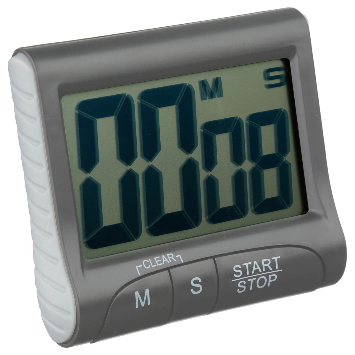 Ψηφιακό χρονόμετρο κουζίνας σε γκρι χρώμα από πλαστικό υλικό. Διαθέτει κλιπ για να το έχετε στην ποδιά σας ή να το στερεώσετε στον πάγκο της κουζίνας.