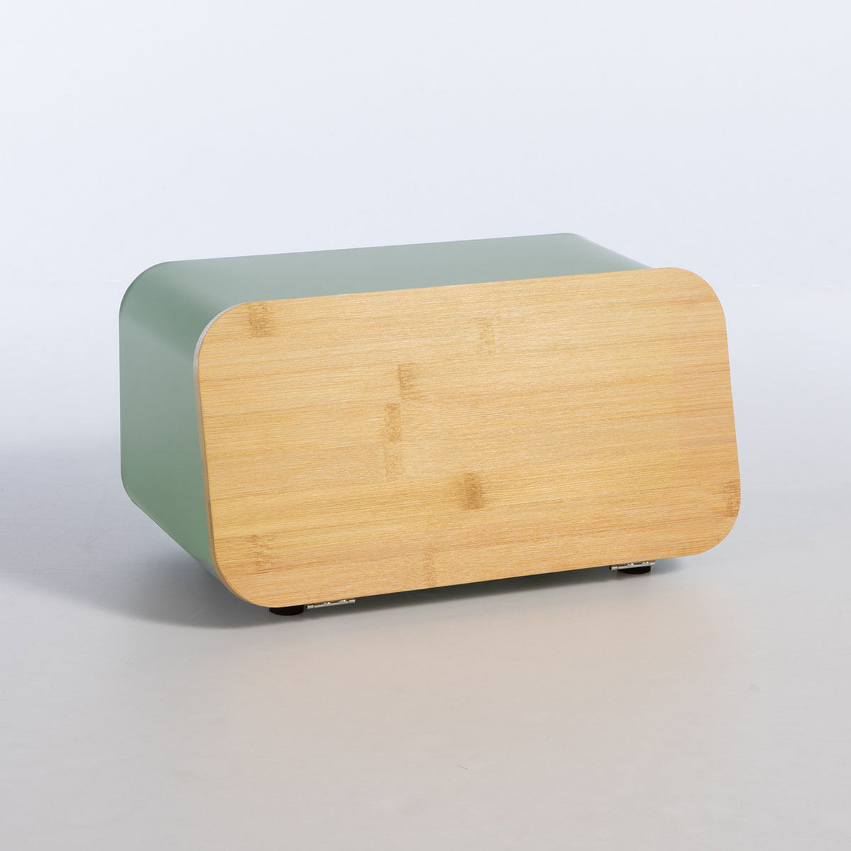 Ψωμιέρα της εταιρείας Nef-Nef σε πράσινο χρώμα. Είναι κατασκευασμένη από μεταλλικό υλικό και έχει ξύλινο καπάκι που μπορεί να χρησιμοποιηθεί και σαν επιφάνεια κοπής του ψωμιού. Ιδανική για να οργανώσετε τον χώρο της κουζίνας και να τον διατηρείτε καθαρό, χωρίς ψίχουλα. Η εταιρεία Nef-Nef διαθέτει πιστοποίηση Oeko-Tex, που εγγυάται ότι τα προϊόντα της είναι απαλλαγμένα από επιβλαβείς χημικές ουσίες.