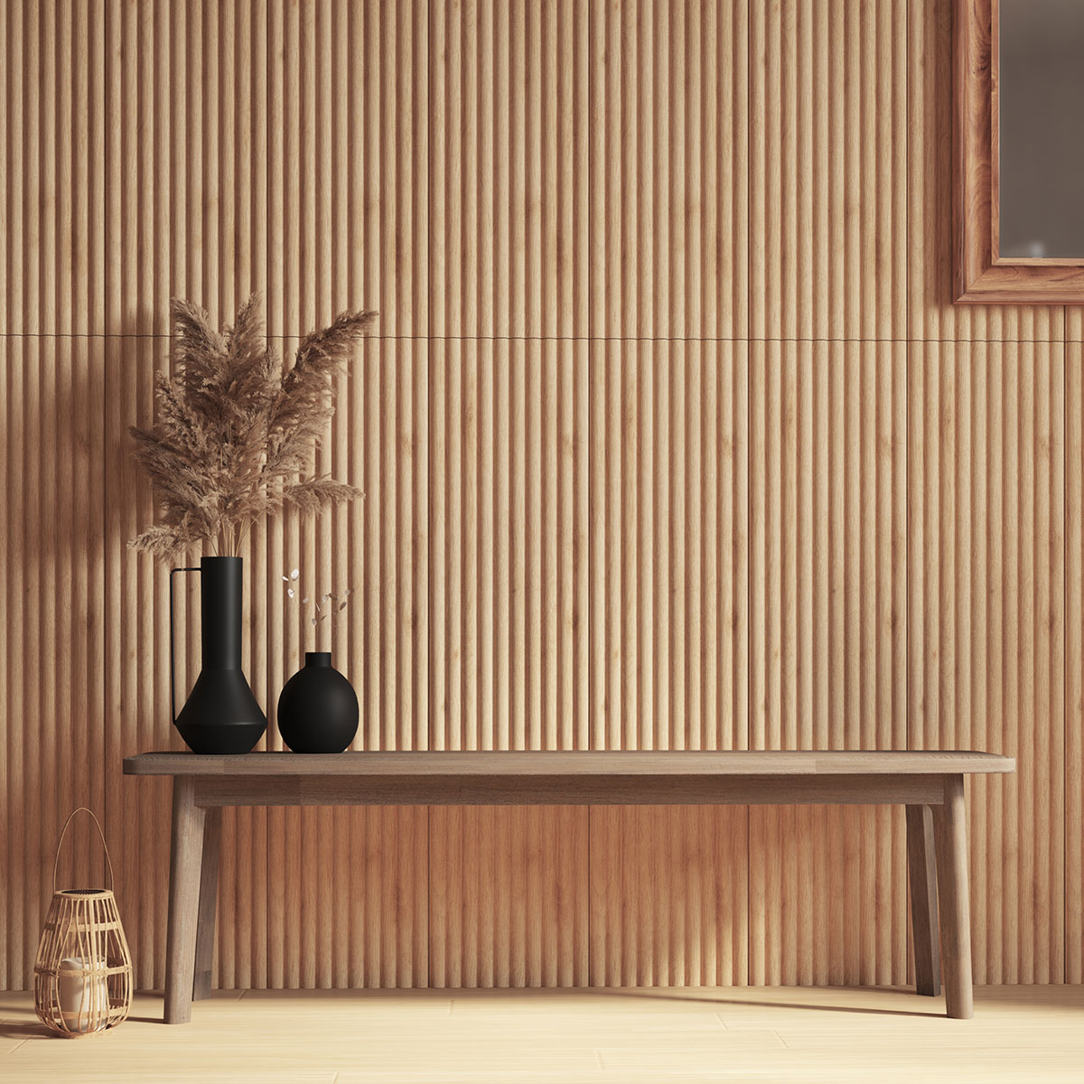 Τρισδιάστατα πάνελ τοίχου σε σετ 2 τεμαχίων. Είναι κατασκευασμένα από ανακυκλωμένο πολυστυρένιο σε μπεζ χρώμα με εφέ ξύλου. Μπορούν να τοποθετηθούν κάθετα ή οριζόντια. Είναι ιδιαίτερα ελαφριά και για να τα στερεώσετε μπορείτε να χρησιμοποιήσετε πολυμερή κόλλα. Μπορείτε να προσθέσετε περισσότερα κομμάτια και να φτιάξετε μια σύνθεση και μπορούν να κοπούν εύκολα στο μέγεθος που χρειάζεστε. Ιδανικά για οικιακούς και επαγγελματικούς χώρους. Είναι κατάλληλο για εσωτερικούς χώρους.