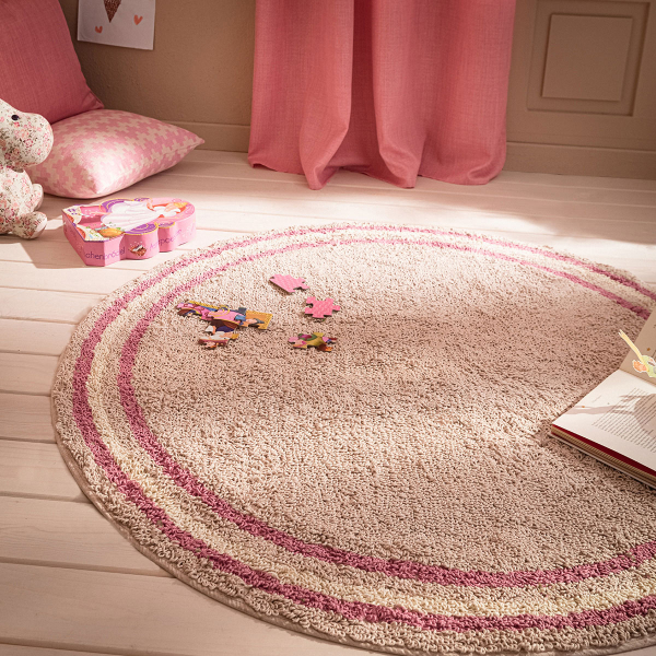 - Με διάμετρο έως 100cm: Ιδανικά για μικρούς χώρους, όπως χολ, γωνιακά σημεία ή κάτω από μικρά τραπεζάκια και πολυθρόνες. Μπορούν επίσης να χρησιμοποιηθούν ως διακοσμητικά στοιχεία σε υπνοδωμάτια ή ακόμα και στο παιδικό δωμάτιο.