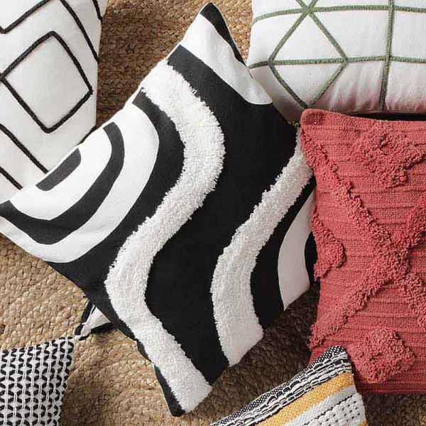Δοκιμάστε να αναμίξετε και να ταιριάξετε διακοσμητικές μαξιλαροθήκες με διαφορετικά σχέδια, χρώματα και μεγέθη και τοποθετήστε δίπλα στο τραπεζάκι σαλονιού και μαξιλάρια δαπέδου για να διακοσμήσετε τον καναπέ σας με την τελευταία λέξη της μόδας.