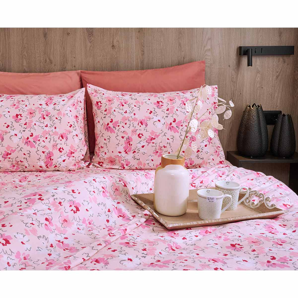 Φανελένια Σεντόνια Υπέρδιπλα (Σετ) Rythmos Flannel Melrose Pink
