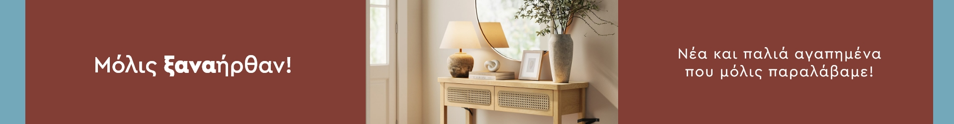 Ανακαλύψτε όλα αυτά που αγαπήσατε περισσότερο! Best sellers προϊόντα που εξαντλήθηκαν και είναι ξανά κοντά σας! Όλα αυτά που λατρέψατε και κάνατε δικά σας είναι και πάλι εδώ για να τα κάνετε δικά σας προτού εξαντληθούν. Υπέροχα είδη που δεν πρέπει να λείπουν από κανένα σπίτι! Έπιπλα, διακοσμητικά, είδη οργάνωσης και αποθήκευσης, λευκά είδη, είδη μπάνιου, βρεφικά και παιδικά είδη, φωτιστικά, κουρτίνες, χαλιά, είδη σερβιρίσματος καθώς και είδη μαγειρικής και ζαχαροπλαστικής. Στη συλλογή μας θα βρείτε και πολλά νέα είδη που μόλις παραλάβαμε για τα οποία είμαστε σίγουροι ότι θα τα λατρέψετε! Συνδυάστε τα παλιά και νέα αγαπημένα είδη που μόλις παραλάβαμε (ξανά) και αναβαθμίστε εύκολα και γρήγορα τη διακόσμηση του σπιτιού σας!