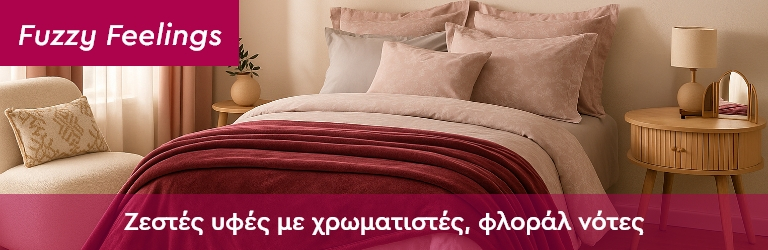 Το trend Fuzzy Feelings είναι η απόλυτη ενσάρκωση της ζεστασιάς και της τρυφερότητας, ένα trend σκέτη αγκαλιά! Δημιουργήθηκε για εκείνες τις στιγμές που θέλουμε απλώς να χαλαρώσουμε μέσα σε έναν χώρο γεμάτο θαλπωρή. Γούνα, σενίλ και μπουκλέ υφές σε αποχρώσεις βουργουνδί, σάπιου μήλου, τερακότας και μωβ συνδυάζονται με φλοράλ πινελιές και γλυκά αρώματα, δημιουργώντας μια ατμόσφαιρα αρμονίας και ρομαντισμού. Το Fuzzy Feelings είναι το ιδανικό για όσους αγαπούν τη ρομαντική, ζεστή διακόσμηση που θα αγκαλιάσει κάθε γωνιά του σπιτιού. Αγαπημένοι συνδυασμοί: μωβ με μπεζ ή βουργουνδί με εκρού και σάπιο μήλο, επιλογές που θα χαρίσουν απαλότητα και κομψότητα!