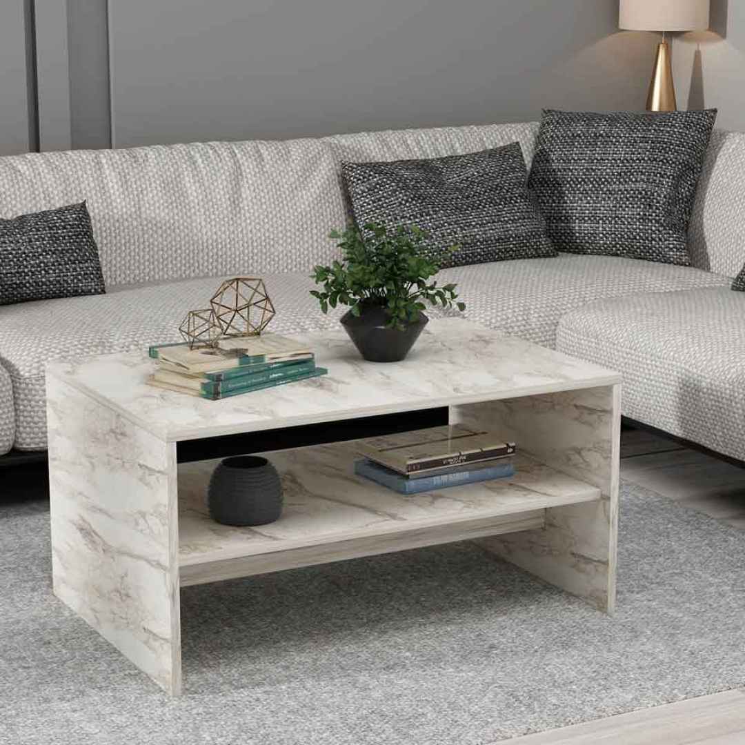 Ένα τραπέζι σαλονιού όπως το Apollon με εφέ Ephesus marble προσφέρει καθαρές γραμμές και επιπλέον ράφι, ενώ στο υπνοδωμάτιο, το κομοδίνο Glimmer με τον μαύρο σκελετό ή η marble εκδοχή του Ema διαμορφώνουν μια ατμόσφαιρα υψηλής αισθητικής.