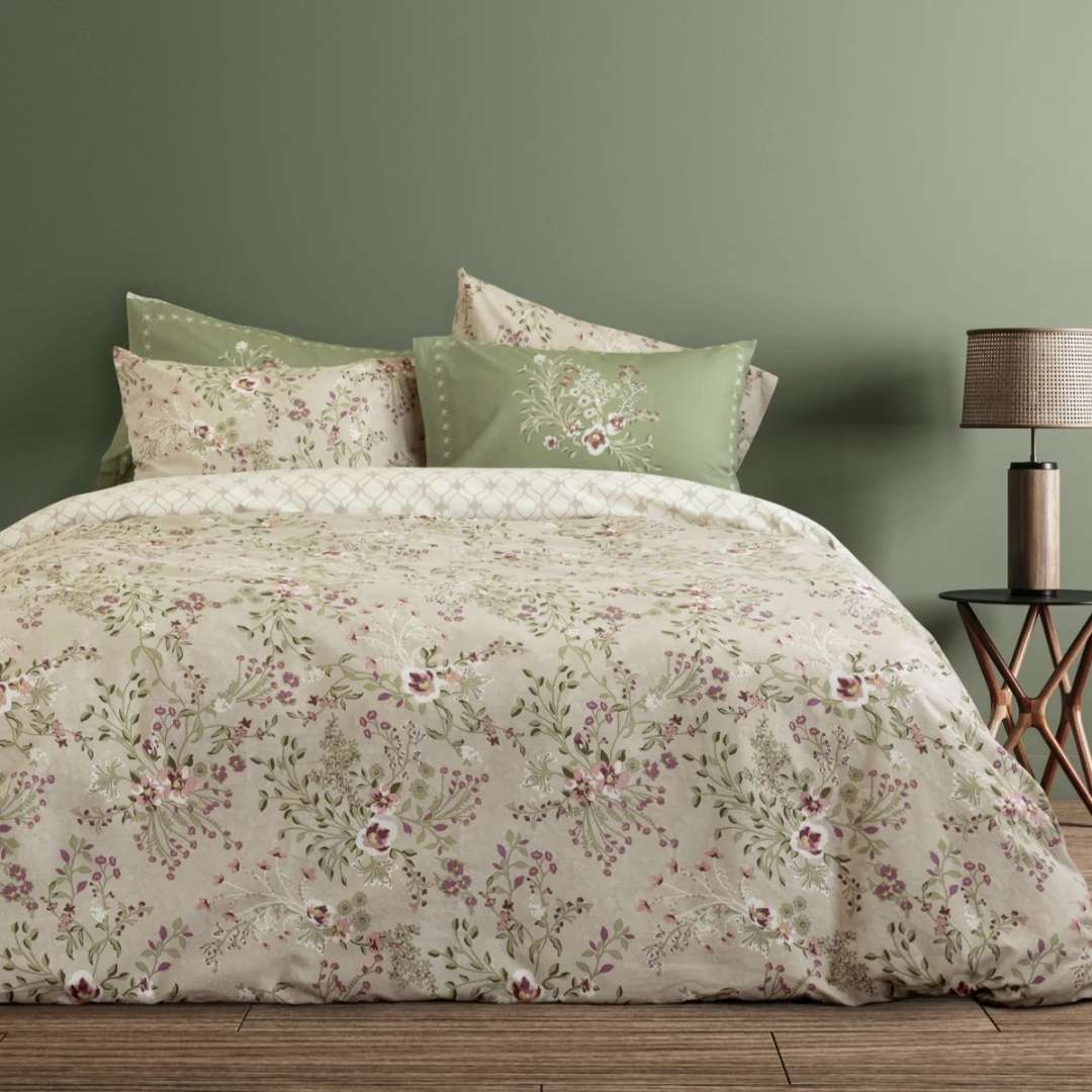 Ένα κυρίαρχο στοιχείο της κρεβατοκάμαράς μας είναι φυσικά το κρεβάτι μας, οπότε θα χρειαστεί όλη τη φροντίδα και την έμπνευσή μας. Θα ξεκινήσουμε λοιπόν με μία θεϊκή παπλωματοθήκη της Nima, τη Mansi στα 43,20€. (Αν θέλεις σημείωσε τις τιμές και θα δούμε το σύνολο στο τέλος!) Το σχέδιό της είναι απλά ονειρικό, με αρχοντικά μοτίβα, στα πιο σικ, ρομαντικά χρώματα της εποχής. Η ποιότητά της είναι εξαιρετική, με ύφασμα 100% βαμβάκι 144 κλωστών, απαλό και ανθεκτικό. Περιλαμβάνονται δύο μαξιλαροθήκες φάκελος, οι οποίες όπως και η παπλωματοθήκη, είναι διπλής όψης! Η μία μεριά έχει το σχέδιο του πανωσέντονου και η άλλη του κατωσέντονου. Μην ξεχάσεις να φυλάξεις την όμορφη συσκευασία της, ένα γλυκύτατο υφασμάτινο πουγκί, που θα σου χρησιμεύσει για να μεταφέρεις τα εσώρουχά σου όταν πας ταξίδι !