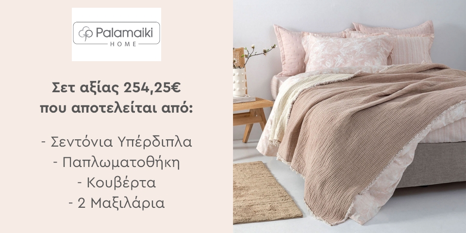 Αν αγαπάς τα ήρεμα και γλυκά χρώματα στο υπνοδωμάτιο σου, το σετ δώρου από την εταιρεία Palamaiki είναι αυτό που θα ελπίζεις να κερδίσεις. Ο συνδυασμός του φλοράλ σχεδίου στο σετ υπέρδιπλα σεντόνια σε ροζ αποχρώσεις, μαζί με το αντίστοιχο σετ παπλωματοθήκης ή την υπέρδιπλη κουβέρτα Mous Beige, θα γίνει πειρασμός! Εμείς προτείνουμε να τα εναλλάσσεις για να ανανεώνεις το υπνοδωμάτιο και τη διάθεσή σου. Στο σετ δώρου θα βρεις επίσης 2 μαλακά μαξιλάρια ύπνου, τα Soft Down Polyester.