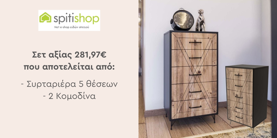 Πώς θα μπορούσαν να λείπουν τα δώρα από το Spitishop?! Επειδή ξέρουμε πόσο αγαπάτε αυτά τα καταπληκτικά σχέδια επίπλων κρεβατοκάμαρας, προσφέρουμε σε έναν από τους τυχερούς μία industrial συρταριέρα και 2 κομοδίνα A-G Felicita Anthracite Oak! Ο πρωτότυπος σχεδιασμός τους, είναι σίγουρο πως θα αναβαθμίσει την αισθητική του χώρου σας.