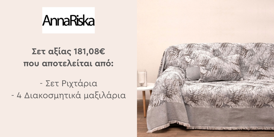 Το σετ δώρου από την Anna Riska αποτελείται από ένα ολοκληρωμένο σετ ριχτάρια για όλο σου το καθιστικό: ριχτάρι τριθέσιου και διθέσιου καναπέ, αλλά και ριχτάρι πολυθρόνας. Πρόκειται για μια ιδιαίτερα εντυπωσιακή σειρά, ενώ τα ριχτάρια είναι κατασκευασμένα από 100% βαμβακερό Jacquard ύφασμα. Στο σετ επίσης περιλαμβάνονται 2 διακοσμητικά μαξιλάρια της ίδιας σειράς!