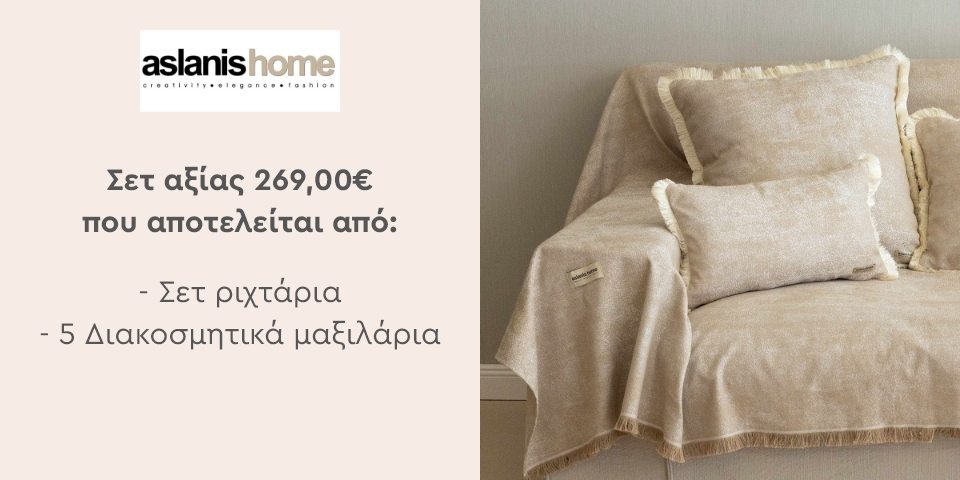 Ένα ιδιαίτερα σικ, ανοιξιάτικο σχέδιο στο σετ δώρου από την εταιρεία Aslanis Home, θα φέρει κομψότητα και πολυτέλεια στο σαλόνι σου. Το σετ Aslanis Home Kedros περιλαμβάνει ένα ριχτάρι για τριθέσιο καναπέ, ένα για διθέσιο, ένα ριχτάρι πολυθρόνας, καθώς επίσης και 5 διακοσμητικές μαξιλαροθήκες (σε διαστάσεις 30x50 και 45x45) με τα αντίστοιχα μαξιλάρια γεμίσματός για να το συμπληρώσουν.