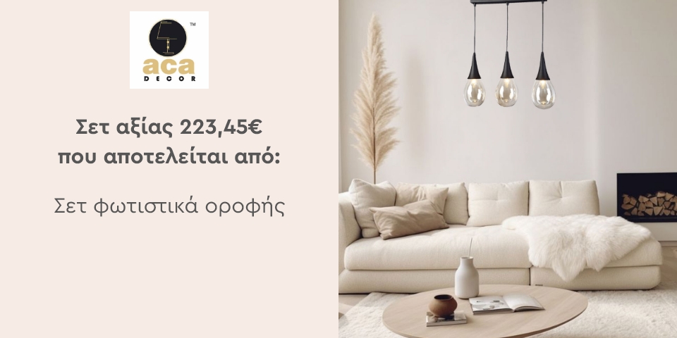 Λατρεύουμε το σετ φωτιστικών οροφής της Aca Decor. Έχουν επιρροές από έθνικ στυλ διακόσμησης, με ένα touch πολυτέλειας, ενώ ταιριάζουν πολύ όμορφα και σε πιο μοντέρνα σπίτια! Το σετ αποτελείται από 3 φωτιστικά οροφής, 2 τρίφωτα (διαφορετικών σχεδίων: σχέδιο 1 και σχέδιο 2) και 1 μονόφωτο.