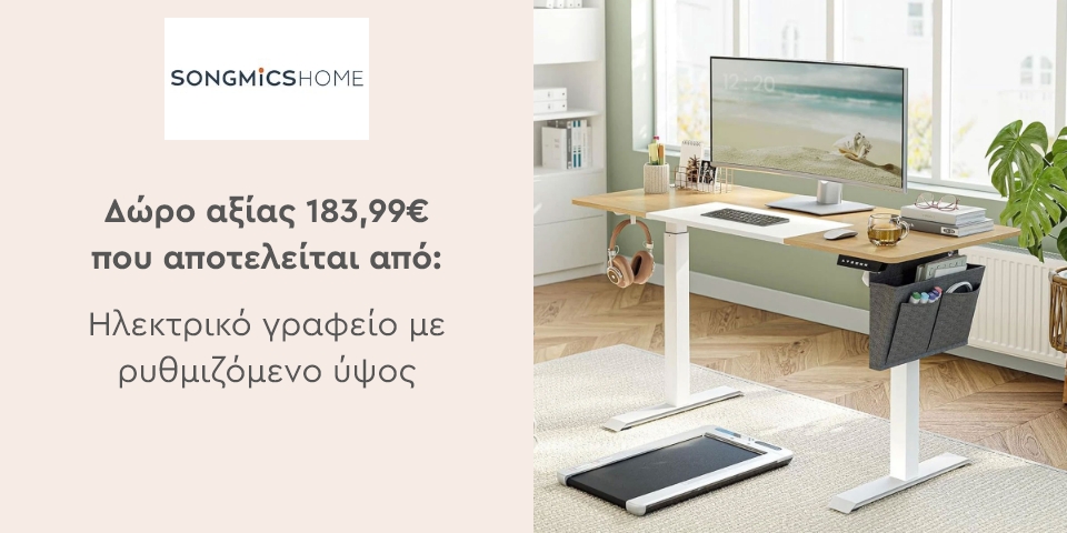 Το ηλεκτρικό γραφείο με ρυθμιζόμενο ύψος έχει αγαπηθεί πολύ από το κοινό του Spitishop και δεν μπορούσε να λείπει από την λίστα δώρων μας στον φετινό διαγωνισμό. Ένα smart έπιπλο που σου δίνει τη δυνατότητα να εργάζεσαι όρθιος ή καθιστός για να ξεπιάνεσαι! Διαθέτει αθόρυβη λειτουργία κατά την αλλαγή θέσης ύψους και θήκες στο πλαϊνό μέρος για την αποθήκευση.