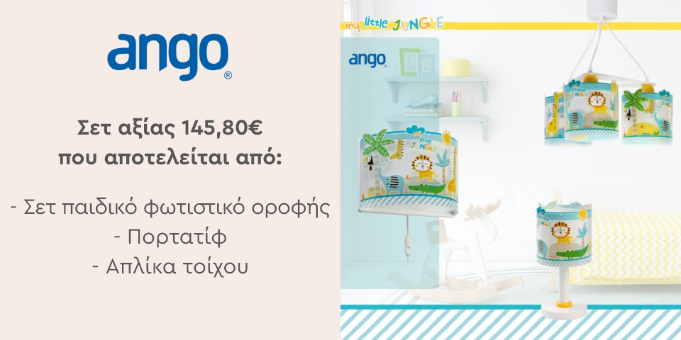 Ένα ολοκληρωμένο σετ φωτιστικών για το υπνοδωμάτιο του μικρού σας από την Ango θα αλλάξει όλη την ατμόσφαιρα του χώρου, αλλά και τη διάθεσή του! Το σετ αποτελείται από ένα φωτιστικό οροφής τρίφωτο, ένα πορτατίφ και μια απλίκα τοίχου. Όλα ανήκουν στην ίδια, αξιολάτρευτη σειρά Ango My Little Jungle!