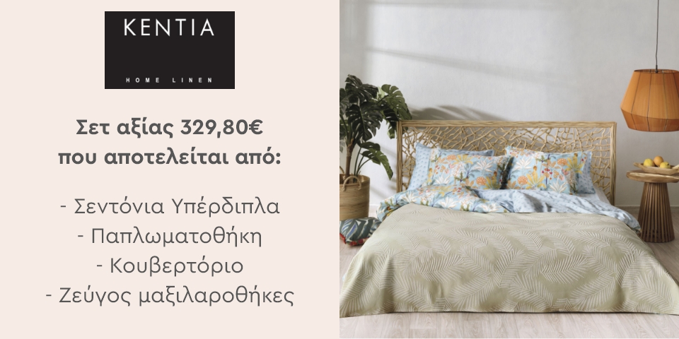 Ένα tropical σχέδιο που θα σε ταξιδέψει, έχει στο ολοκληρωμένο σετ δώρου της για το υπνοδωμάτιο η Kentia, που περιλαμβάνει ένα ανάλαφρο κουβερτόριο, ένα σετ υπέρδιπλα σεντόνια και το αντίστοιχο σετ παπλωματοθήκης, καθώς επίσης και το ίδιο ζεύγος μαξιλαροθήκες. Η σειρά Kentia Stylish Zuba Blue με την εντυπωσιακή βεραμάν απόχρωση και τα εντυπωσιακά μοτίβα θα φέρει φρεσκάδα και αέρα ανανέωσης στην κρεβατοκάμαρά σου.