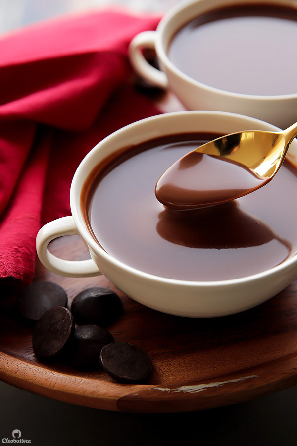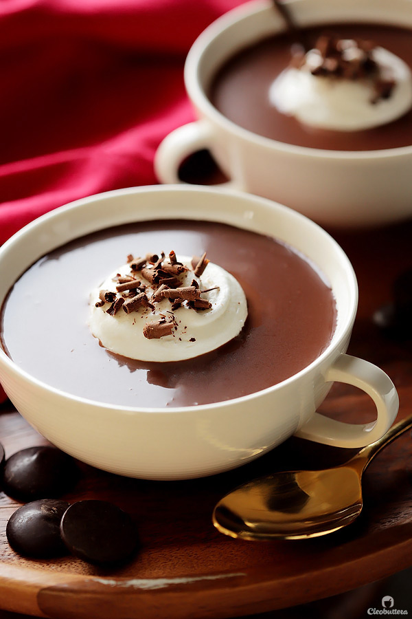 - Βγάζουμε από τη φωτιά και έτοιμη για σερβίρισμα. Η συνταγή γεμίζει 2 κούπες μεσαίου μεγέθους, όμως επειδή είναι εξαιρετικά πλούσια σε υφή, μπορείτε να σερβίρετε 4 μικρές κούπες. Γαρνίρετε με λίγη σαντιγί και προσθέτετε τρίμματα σοκολάτας. Σερβίρετε αμέσως καθώς το ρόφημα θα συνεχίσει να πήζει καθώς κρυώνει.