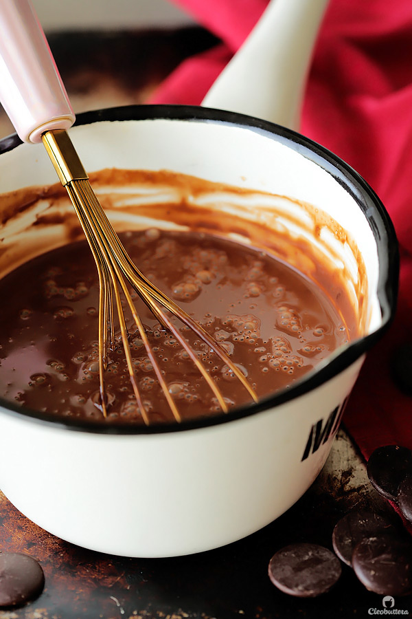 - Χτυπάμε κάθε λεπτό και αφήνουμε τη σοκολάτα να λιώσει μέχρι να ομογενοποιηθεί το μείγμα.