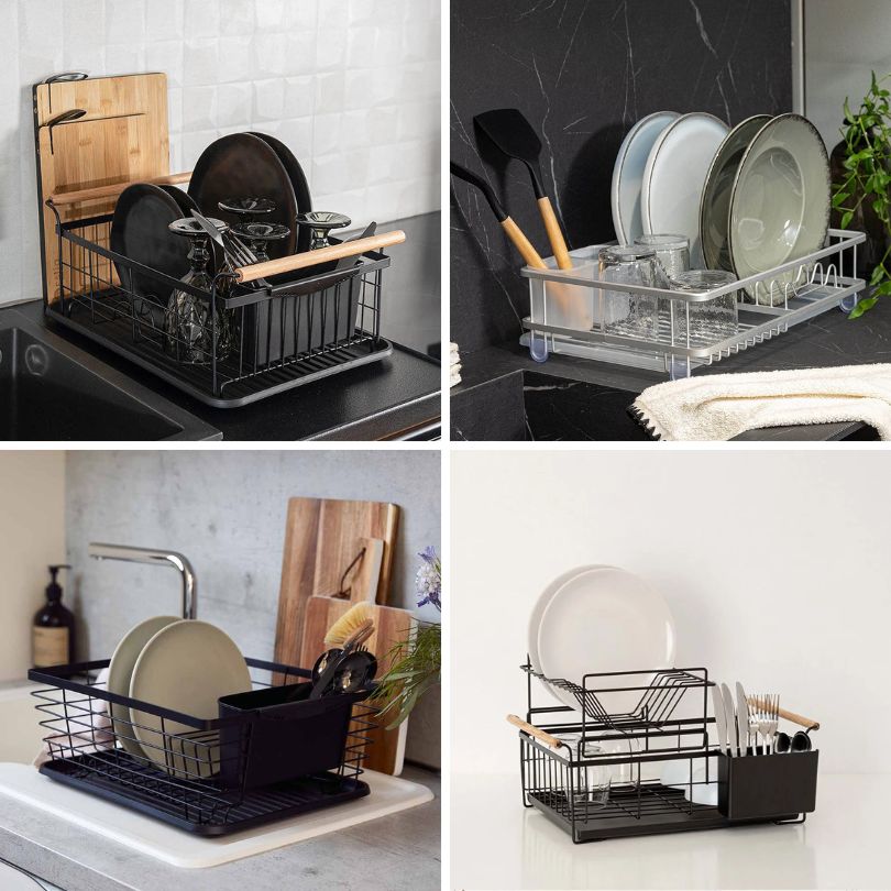 Για αρχή θα χρειαστείς μια πιατοθήκη. Πέρα από τις κλασικές, παραδοσιακές πιατοθήκες που συνήθως βάζουμε στον πάγκο δίπλα του, για να μη σπαταλάς χώρο υπάρχουν πιατοθήκες που μπορείς να έχεις μέσα στο νεροχύτη (με την προϋπόθεση βέβαια να είναι διπλός). Διαφορετικά υπάρχουν και νεότερου σχεδιασμού προϊόντα για να στεγνώνεις λίγα είδη που πλένεις στο χέρι και που έχουν τη λογική ότι τα τοποθετείς στον πάγκο κάθε φορά που τα χρειάζεσαι και όχι σε μόνιμη βάση.