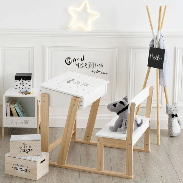 Ξεκινήστε με ένα μικρό τραπεζάκι ή γραφείο το οποίο να είναι βολικό για το παιδί, ποιοτικό αλλά και καλαίσθητο. Καλό θα είναι να εστιάσετε στο υλικό από το οποίο θα είναι κατασκευασμένο το γραφείο, να συμμορφώνεται με τα σχετικά πρότυπα ασφαλείας αλλά και να είναι εύκολο στη συναρμολόγηση. Μπορείτε επίσης να διαλέξετε μια ασορτί καρέκλα γραφείου, και έτσι να φτιάξετε την δική του προσωπική μελετηρή γωνίτσα! Εκεί θα μπορεί να μαθαίνει, να δημιουργεί και να ενθουσιάζεται!