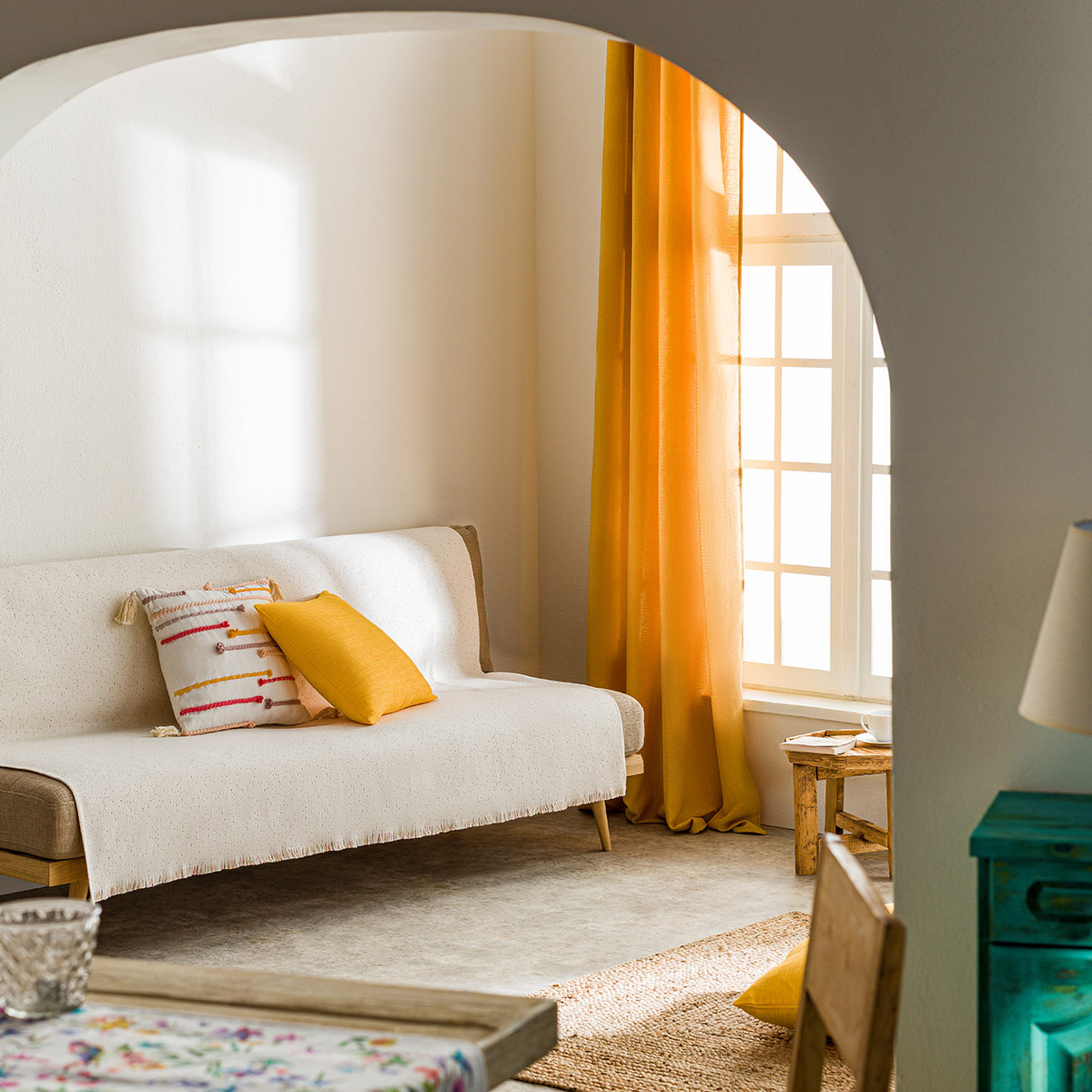 - Για ανανέωση, θα διάλεγα το ριχτάρι DOTLY εκρού, συνδυασμένο με τις μαξιλαροθήκες TRESSY και CHROME. Ένας από τους αγαπημένους συνδυασμούς για φέτος.