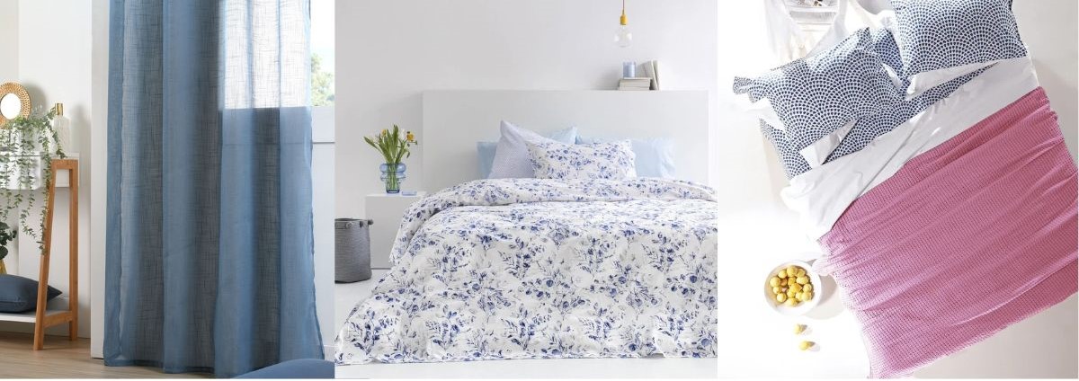 Ανάλογα με την ένταση που επιθυμείτε για την κρεβατοκάμαρα, μπορείτε να στρώσετε μια ολόλευκη κουβέρτα από βάφλα, δημιουργώντας έναν μοναδικό καλοκαιρινό συνδυασμό με τα μπλε σεντόνια ή μια ζωηρή, φούξια πικέ κουβέρτα φέρνοντας μια κυκλαδίτικη ατμόσφαιρα στο δωμάτιο.