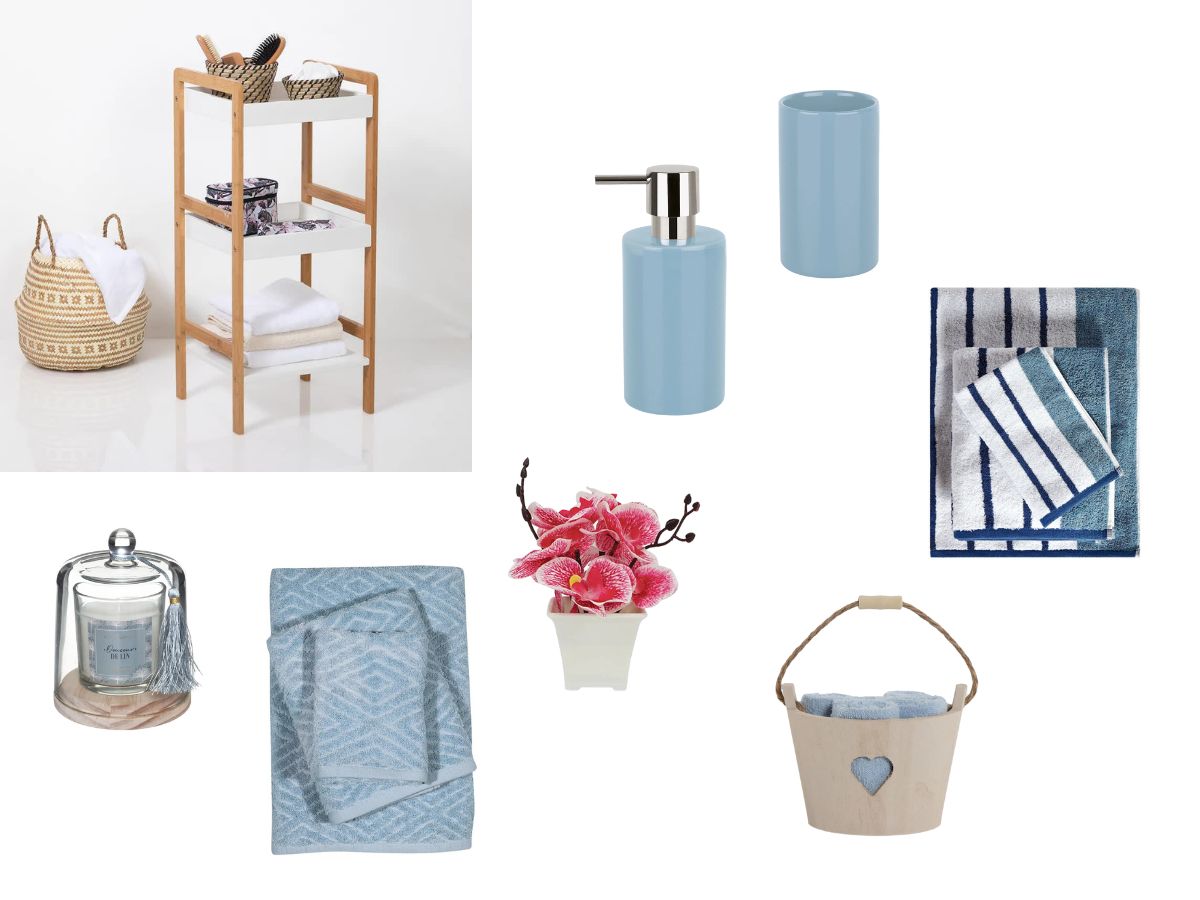 Για να ολοκληρώσετε την καλοκαιρινή ατμόσφαιρα, μπορείτε να ανανεώσετε τα αξεσουάρ στο μπάνιο σας με μπλε αποχρώσεις που θα ταιριάξουν με τα έπιπλά σας.