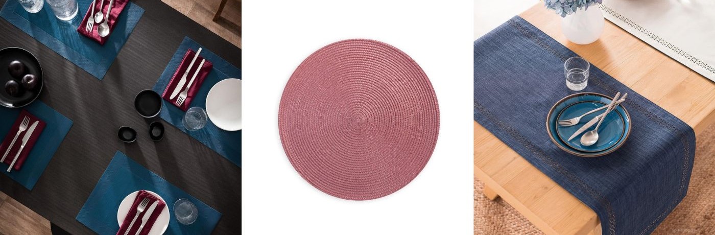 Στην κουζίνα μπορείτε να στρώσετε είτε ένα έντονο τραπεζομάντηλο, με κυρίαρχες αποχρώσεις το μπλε και το ροζ ή συνδυασμό τους, ανάλογα με το πόσο ζωηρό θέλετε το χώρο. Η δική μας πρόταση όμως, είναι μια έντονη μπλε τραβέρσα που θα συνδυάσετε με ροζ σουπλά.