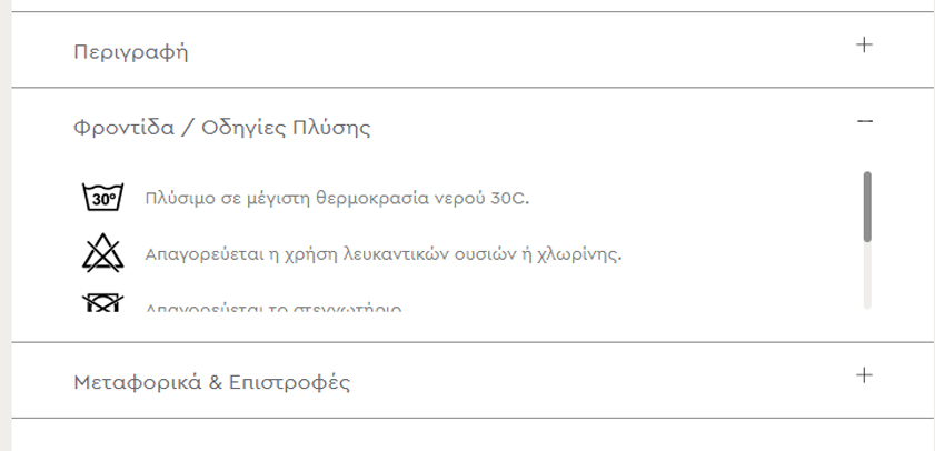 Με τη προσθήκη οδηγιών φροντίδας στη σελίδα παρουσίασης των προϊόντων μας μπορείτε πλέον να δείτε εξαρχής τι χρειάζεται για να διατηρήσετε τα αγαπημένα σας προϊόντα σε εξαιρετική κατάσταση για πολλά χρόνια!