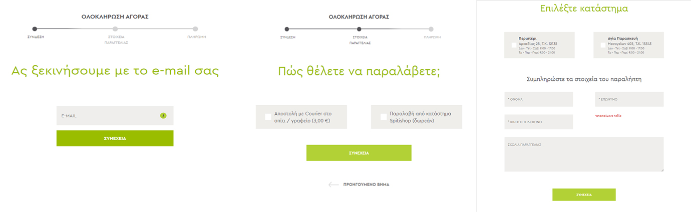 Εδώ όλα τα βήματα έγιναν ακόμα πιο απλά ώστε να ολοκληρώσετε γρήγορα την αγορά σας είτε διατηρείτε λογαριασμό στο Spitishop είτε επιθυμείτε να κάνετε τις αγορές σας ως «επισκέπτης» δίνοντας κάθε φορά μόνο τα απολύτως απαραίτητα στοιχεία για την επεξεργασία της παραγγελίας σας.