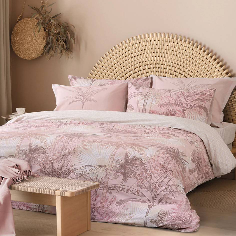 Το tropical σχέδιο σε ροζ αποχρώσεις στα σεντόνια Nima Curacao θα φτιάξει την πιο χαλαρωτική ατμόσφαιρα για τον πιο γλυκό ύπνο τους καλοκαιρινούς μήνες.