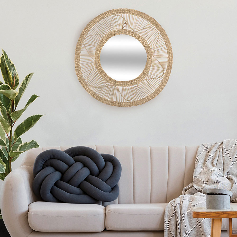 Ο καθρέφτης τοίχου Flower Seagrass σε ψάθινο πλαίσιο και φυσική απόχρωση είναι ο πιο περιζήτητος καθρέφτης στην κατηγορία του! Η συνολική του διάμετρος είναι 58 εκ με τη διάμετρο του καθρέφτη στα 28 εκ. Η ιδιαιτερότητα του πλαισίου του τον κάνει ένα πραγματικό διακοσμητικό στοιχείο για τον χώρο, οπότε μπορείτε να τον χρησιμοποιήσετε και στο υπνοδωμάτιο και στο σαλόνι αν στοχεύετε σε ένα πιο μοντέρνο, σκανδιναβικό ή boho αποτέλεσμα!