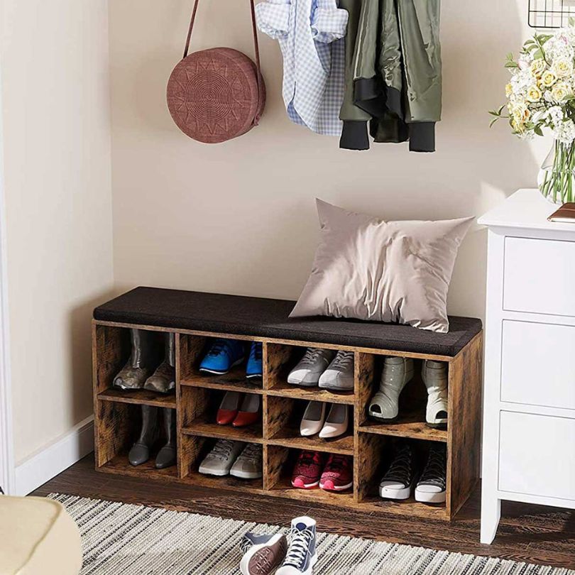Επιστρέφουμε ξανά στην είσοδο του σπιτιού για όσους δεν θέλουν μεγάλο έπιπλο, αλλά κάτι πιο μικρό που να δίνει θέσεις για παπούτσια. Το παγκάκι εισόδου-παπουτσοθήκη διαθέτει και υφασμάτινο μαξιλαράκι στο πάνω μέρος για να κάθεσαι και βάζεις τα παπούτσια σου. Πρόλαβέ το στην τιμή των 71,09 €.