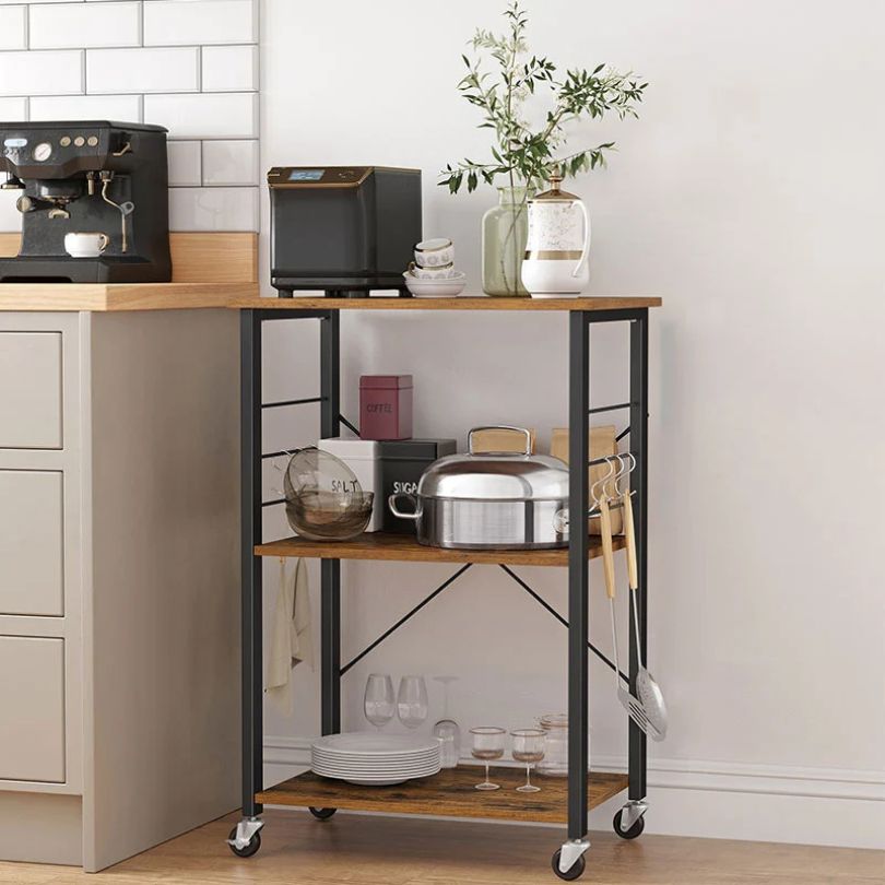 Ακόμα ένα πολύ χρήσιμο προϊόν για την κουζίνα, το σαλόνι ή το μπάνιο. Το τρόλει/ραφιέρα 3 θέσεων με 6 γατζάκια κρεμάσματος, θα σου δώσει αρκετό χώρο για να αποθηκεύσεις ό,τι χρειάζεσαι δίνοντας παράλληλα και μια πινελιά διακόσμησης με το έντονο ρουστικ ξύλο του. Βρες το στην τιμή των 48,44 €.