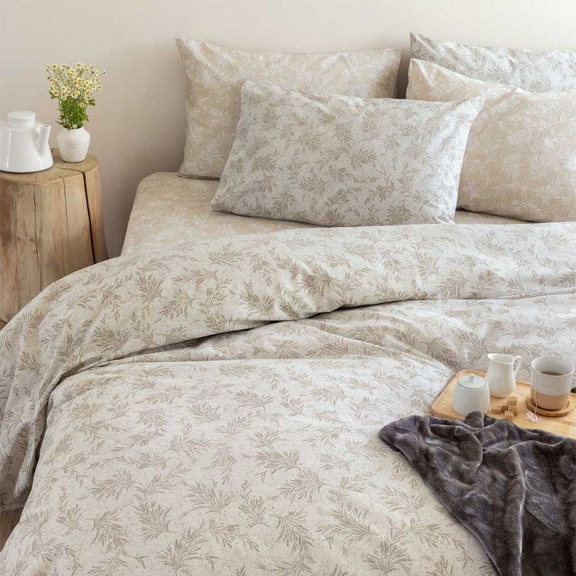 Στα σεντόνια νικητής αναδείχθηκε ένα φλοράλ σχέδιο της Palamaiki Fashion σε μια ουδέτερη εκρού απόχρωση που θα ταιριάξει πολύ ευκολα με ό,τι σκέπασμα και αν επιλέξεις να το συνδυάσεις σε όλη τη διάρκεια της χρονιάς. Είναι από 100% Βαμβάκι και το σετ περιλαμβάνει πανωσέντονο, κατωσέντονο και μαξιλαροθήκες διπλής όψης στο σχέδιο των σεντονιών. Πρόλαβέ το στην τιμή των 34,30 €.