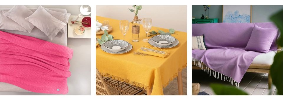 Αν είστε λάτρεις του λιλά, τότε το ριχτάρι Gofis Home Eartha Lilac είναι η καλύτερη επιλογή! Δείτε πόσο θα ομορφύνει το σαλόνι σας μόλις το συνδυάσετε με μαξιλαροθήκες όπως η Gofis Home Liliosa ή η S-F Thailande! Επόμενο βήμα είναι η κουρτίνα Belline Rideau Blanc/Emeraude σε λευκό, σομόν και σμαραγδένιο πράσινο και το χαλί Kentia Yute 229. Θέλετε κι άλλο χρώμα; Δεν φαντάζεστε πόσο θα δέσει αυτός ο φούξια κάκτος μαζί με αυτή την πιατέλα σε neon green! Μήπως