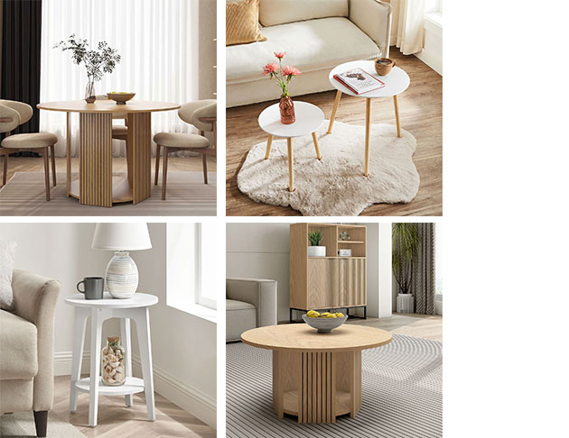 Μπορείς να ξεκινήσεις τοποθετώντας μερικά ξύλινα έπιπλα με καμπύλες γραμμές στο σαλόνι σου, τα οποία θα προσδώσουν μία νότα ζεστασιάς και οικειότητας στον χώρο. Στρογγυλά, λευκά βοηθητικά τραπεζάκια ή τραπεζάκια σαλονιού σε ανοιχτόχρωμο ξύλο θα αποτελέσουν μια πολύ καλή “βάση” για να φτιάξεις το δικό σου Slow Life “ησυχαστήριο”.