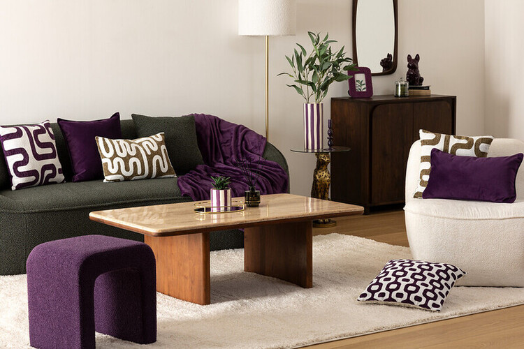 Η επόμενη αλλαγή που μπορείς να κάνεις στο σαλόνι σου και είναι πανεύκολη: πρόσθεσε μια σκούρα μωβ, βελούρ κουβέρτα στον καναπέ σου, και συνδύασέ το με ένα διακοσμητικό μαξιλάρι με έντονα γεωμετρικά μοτίβα, το οποίο θα προσθέσει μια μοντέρνα πινελιά.