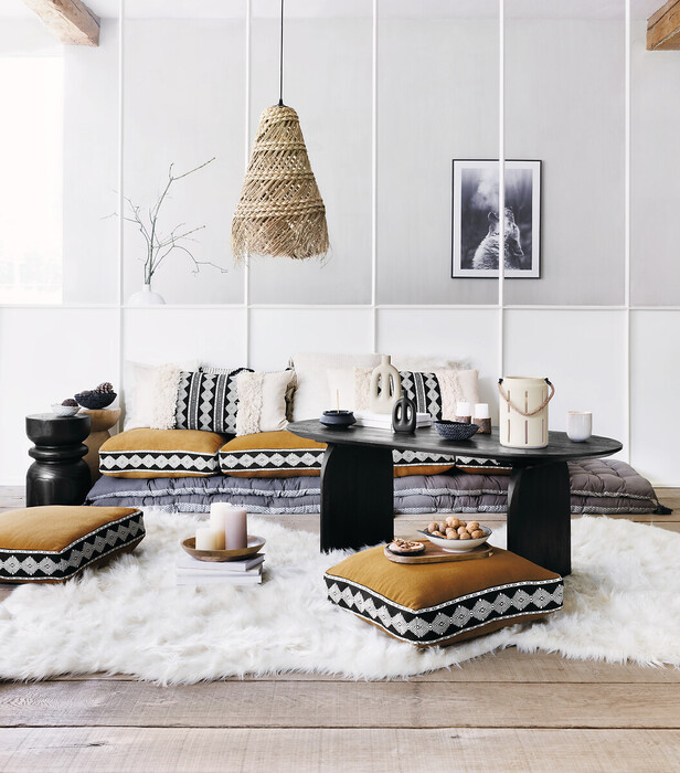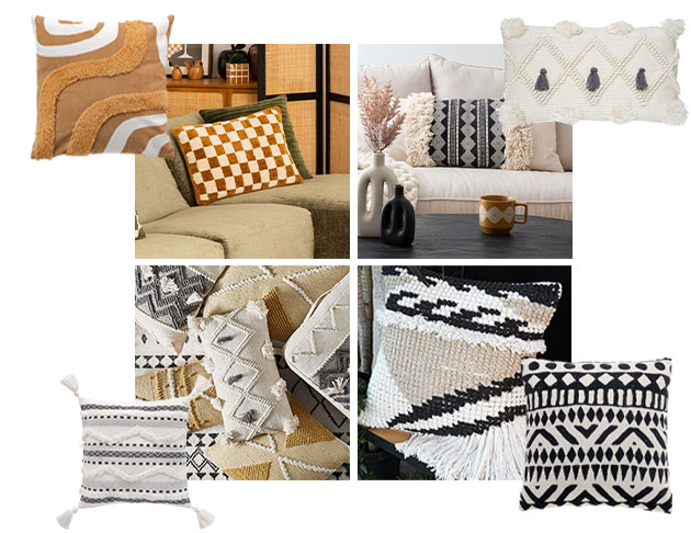 Η επόμενη κίνηση είναι να διακοσμήσεις τον καναπέ σου με μαξιλάρια σε διάφορα μεγέθη και σχήματα, με πρωτότυπα γεωμετρικά μοτίβα σε γήινες αποχρώσεις ή ενσωματώνοντας και το δίδυμο άσπρο-μαύρο (για τους πιο τολμηρούς). Τα μαξιλάρια θα προσδώσουν μια καλλιτεχνική νότα στον χώρο και θα αναδείξουν την προσοχή στη λεπτομέρεια.