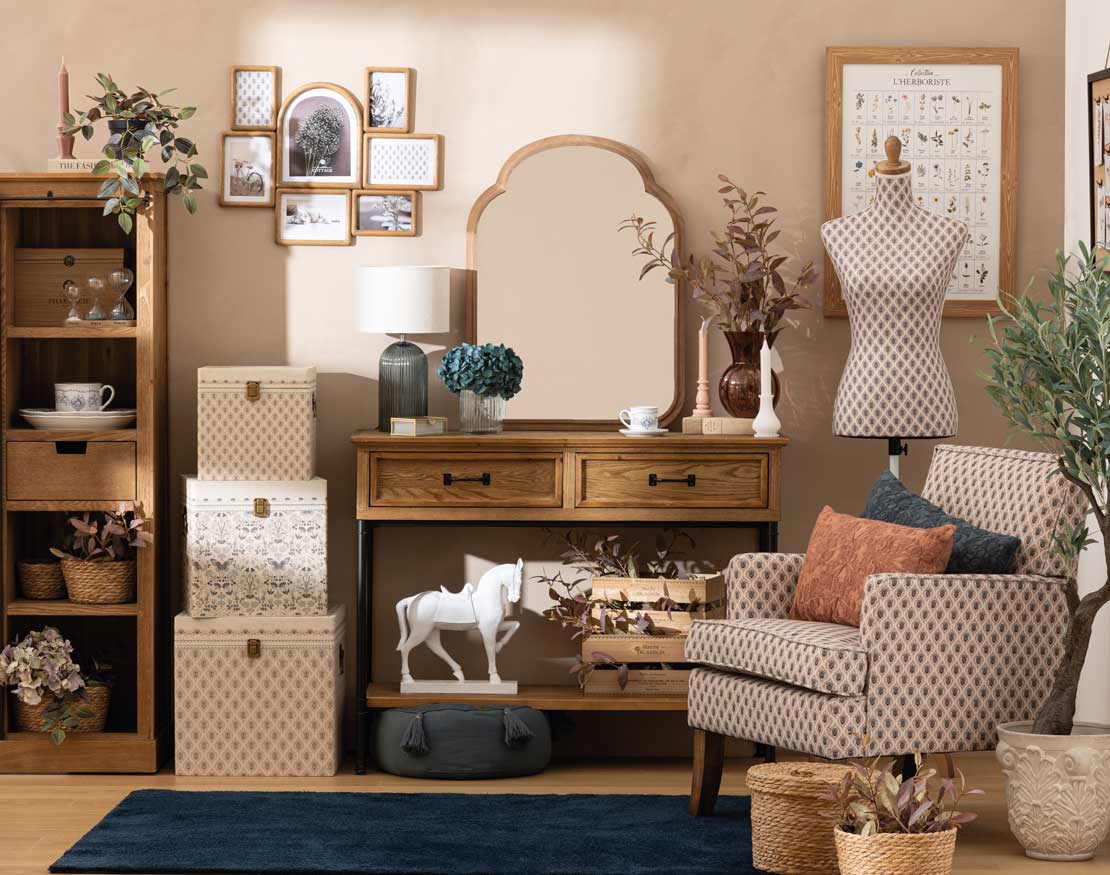 Το Rustic Elegance είναι ένα trend απλό και ρομαντικό, με το οποίο μπορείς να δημιουργήσεις ένα γλυκό, vintage καταφύγιο. Το ξύλο στις αποχρώσεις της βελανιδιάς και της καρυδιάς, σε συνδυασμό με τις σενίλ υφές δημιουργούν μια ατμόσφαιρα ζεστή και οικεία, ενώ παράλληλα, κεραμικά διακοσμητικά με απαλές καμπύλες σε γήινες αποχρώσεις, προσθέτουν μια artistic νότα στον χώρο.