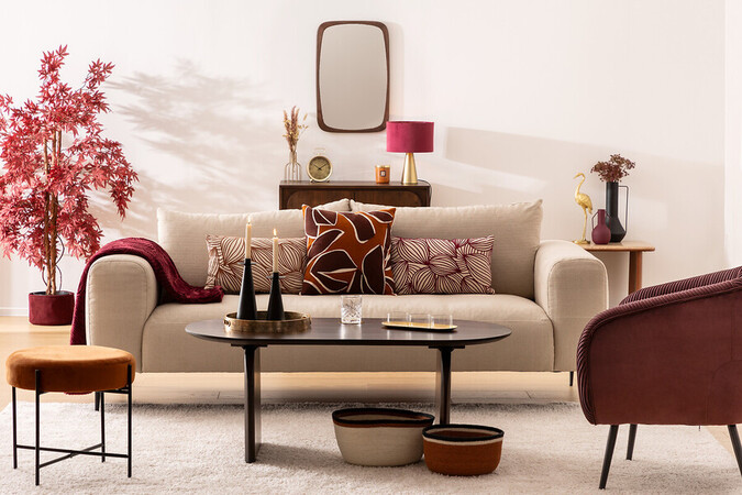 Μπορείς να ξεκινήσεις τοποθετώντας στο τραπεζάκι του σαλονιού σου μία κομψή σύνθεση από διακοσμητικά βάζα σε εκρού, μπορντό και σκούρο μωβ/καφέ. Πρωτότυπα και λίγο πιο ανάλαφρα διακοσμητικά θα κάνουν το σαλόνι σου λίγο πιο παιχνιδιάρικο και φιλόξενο.