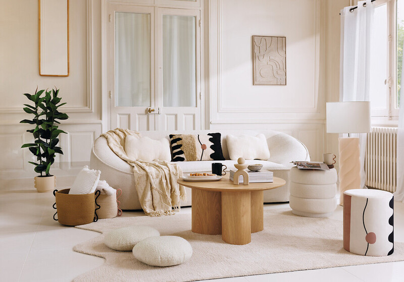 Μία βασική κίνηση για τη μεταμόρφωση του σαλονιού σου, είναι να τοποθετήσεις ένα απαλό μπουκλέ πουφ σε μια γωνία του δωματίου. Το μπουκλέ είναι μια υφή που “βγάζει” κάτι πολύ cozy και θα προσθέσει μια πινελιά ζεστασιάς στον χώρο.